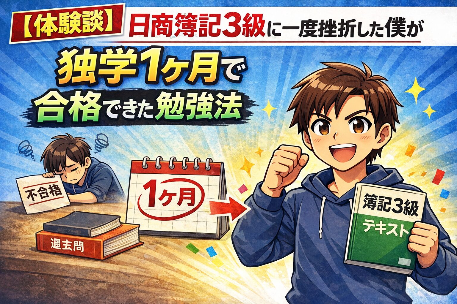 この記事では、日商簿記3級に一度挫折した経験をもとに、