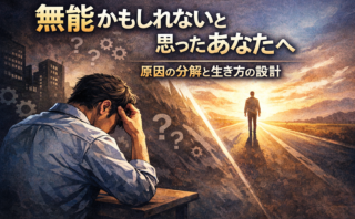 失敗・後悔した話 無能かもしれないと思ったあなたへ|原因の分解と生き方の設計 仕事が続かないと「自分は無能なのでは」と感じてしまいますよね。本記事では、無能だと思い込んでしまう構造を4つに分解し、タイプ別に現実的な生き方の選び直し方を整理します。努力ではなく“配置と設計”で消耗を減らす方法を解説。 2022.07.22 失敗・後悔した話