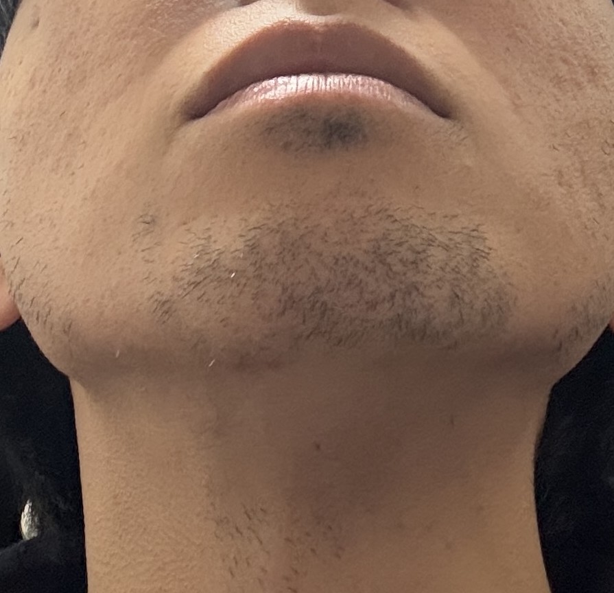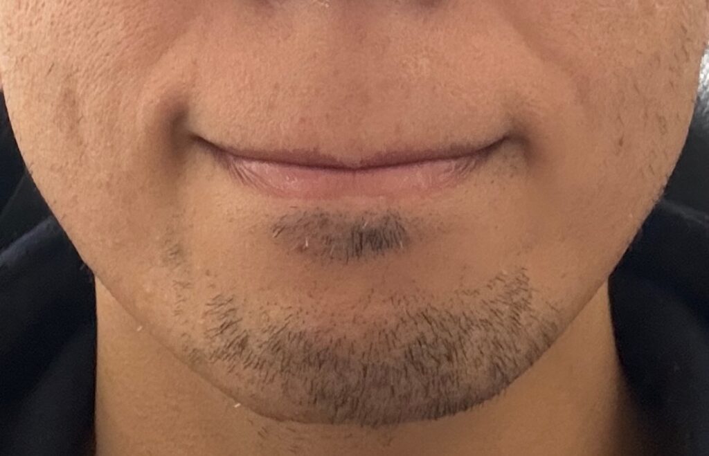 一方で、あごの中央部と唇下は、まだ結構ヒゲが残っています。