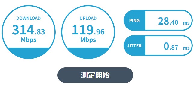 - ダウンロード:314Mbps